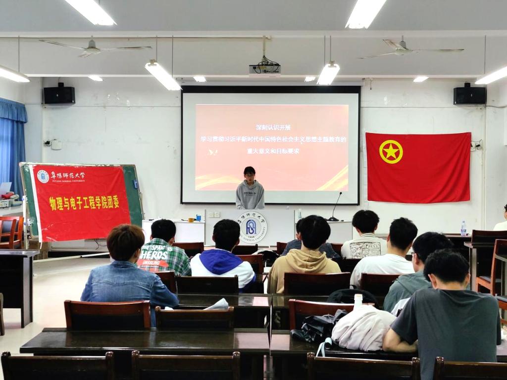 为切实引领广大团员青年继承和发扬“爱国、进步、民主、科学”的五四精神,引导广大团员青年坚定信念跟党走、团结奋进新征程,深刻领会新时代新征程党和国家事业的重大战略部署,围绕中心、服务大局、担当作为,把青春和奋斗融入党和人民事业,5月4日,物理与电子工程学院团委在躬行楼C505组织开展“五四”青年节主题团日活动,以习近平总书记在学习贯彻习近平新时代中国特色社会主义思想主题教育工作会议上的讲话为主要内容。学院各班级团支部书记参加此次活动,活动由学院团委副书记杜雨凡主持。
