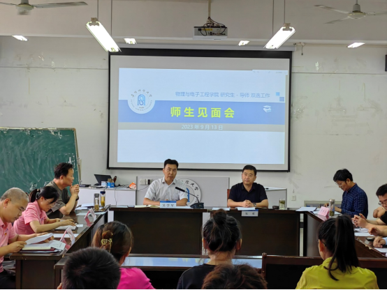 9月13日下午,物理与电子工程学院在躬行C楼505教室举办2023级研究生师生见面会,党委书记吴学军、院长朱勇、部分研究生导师和2023级全体研究生参加见面会。会议由研究生工作秘书丁智勇主持。
