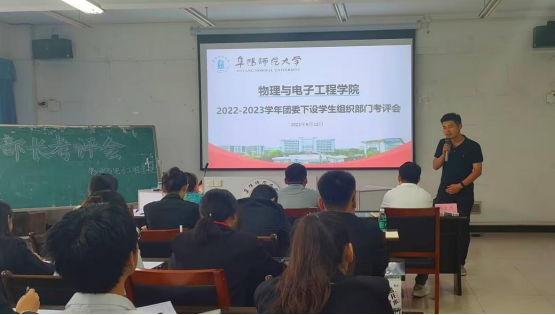 为深入学习贯彻习近平新时代中国特色社会主义思想和习近平总书记关于青年工作的重要思想,切实巩固和深化学生会组织改革成效,9月12日中午,在躬行C楼505教室召开2022-2023学年学生会部门考评会。学院党委副书记张传智、学院团委负责人李振、辅导员吴慧梓、李聪、刘少杰参加此次考评会并担任评委。各部门参与考评。
