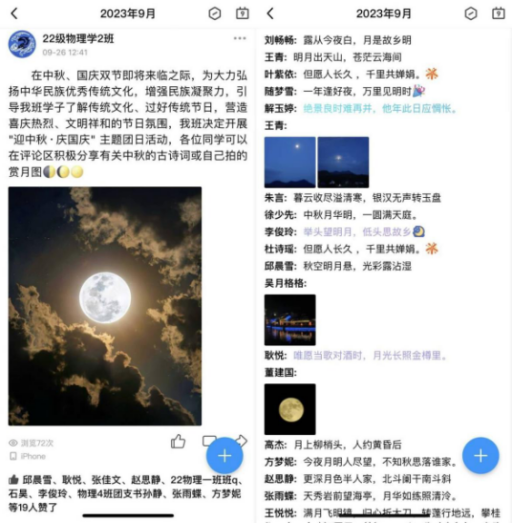 活动的开展,使同学们更加深刻地感受到了祖国的伟大和中秋的美好。在观影评论区以及班级QQ留言中,许多同学都表达了强烈的爱国情感和对传统文化的热爱,营造了文明和谐的节日氛围。