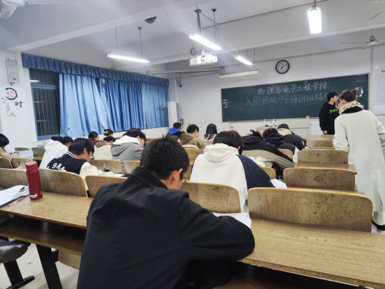 为进一步提升入团积极分子对党团基本知识理论的学习,11月12日,根据入团相关程序,物理与电子工程学院团委组织2023年第二批入团积极分子在西湖校区躬行A楼进行入团积极分子结业考试。