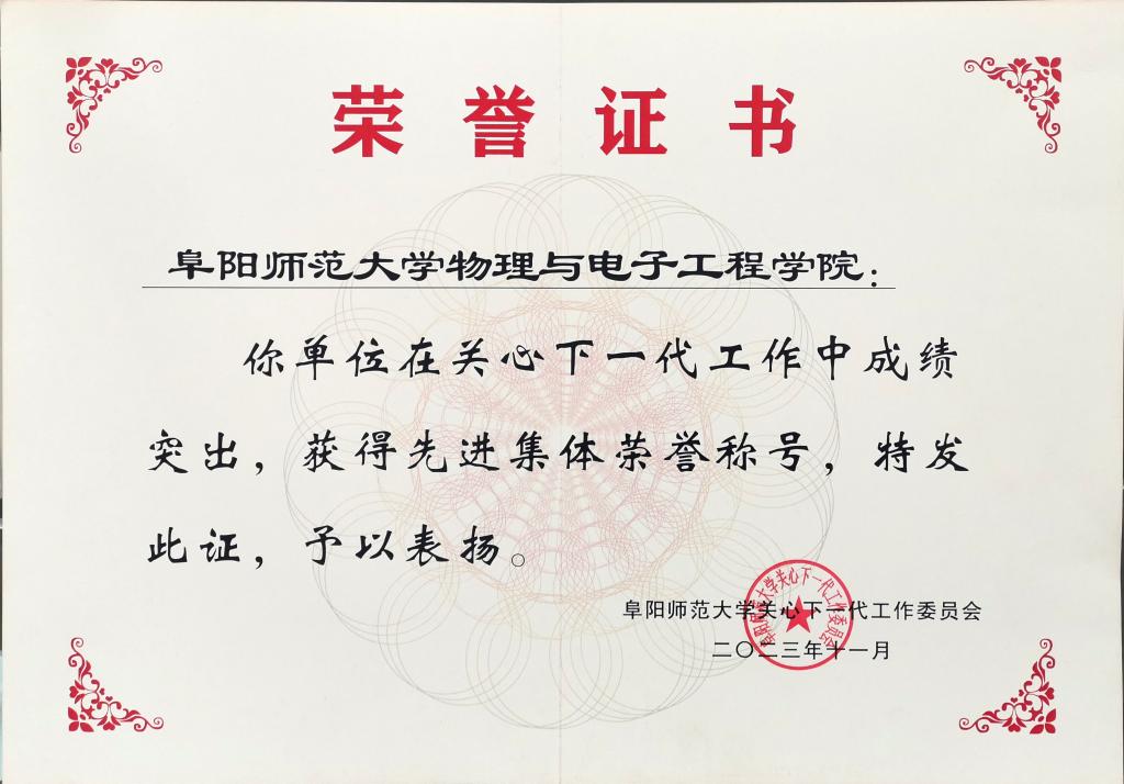 11月21日,阜阳师范大学关工委成立30周年庆祝大会在躬行楼F楼报告厅召开。会上表彰了一批关心下一代工作先进集体和先进个人。我院荣获“关心下一代工作先进集体”称号,余建华、吴学军二同志荣获关心下一代“先进工作者”称号。