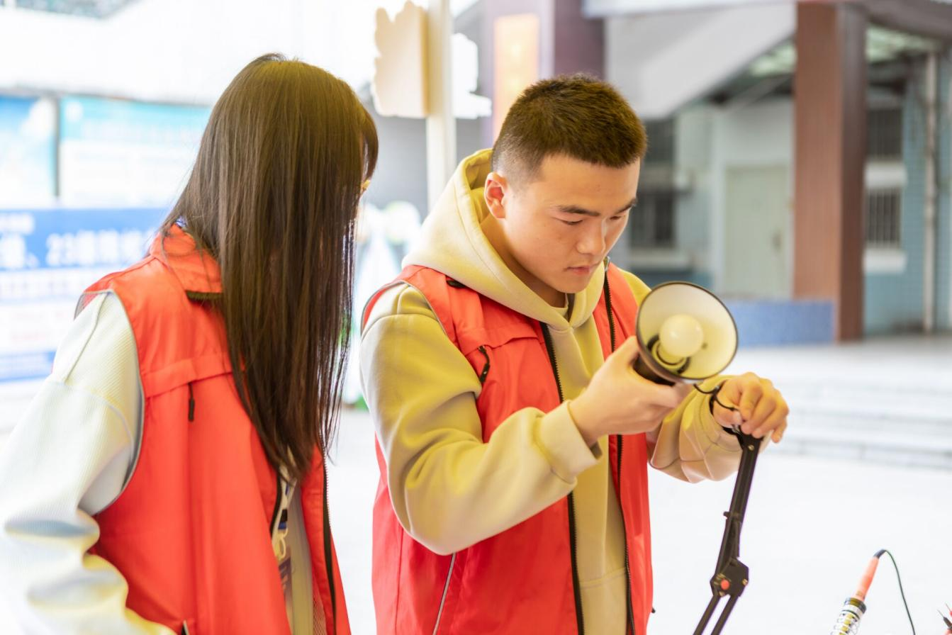 在活动过程中,负责维修志愿者热心地接待每一位同学,认真进行信息登记并检修电器存在的故障,使用万用表、电笔等维修工具对小风扇、台灯、充电器、遥控器等电器进行检测,仔细分析每一件电器存在的问题,解答同学们提出的问题,对于无法维修的电器详细说明原因,并向他们提供维修建议。现场志愿者们向大家讲解常规电器使用方法和相关注意事项,分享安全用电小知识。