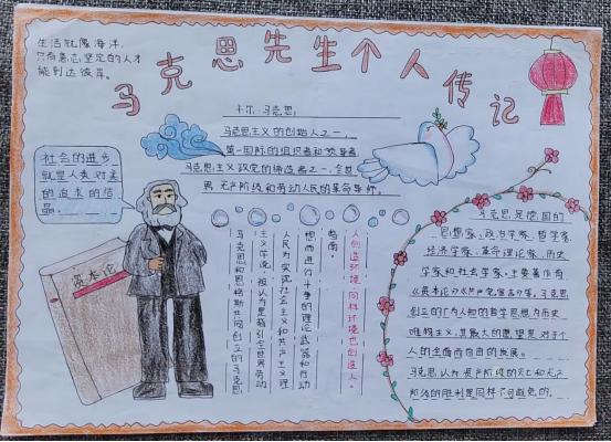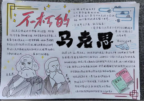 在本次活动中,同学们积极了解马克思先生个人传记、中国共产党党史内容及党的伟大精神等,他们通过手中的画笔,图文并茂地展现了对马克思主义的理解和认识。此次活动共征集优秀作品10份,支部评审组从手抄报的色彩构图、内容形式等方面进行综合评定,共评选出一等奖1名,二等奖2名,三等奖3名。
