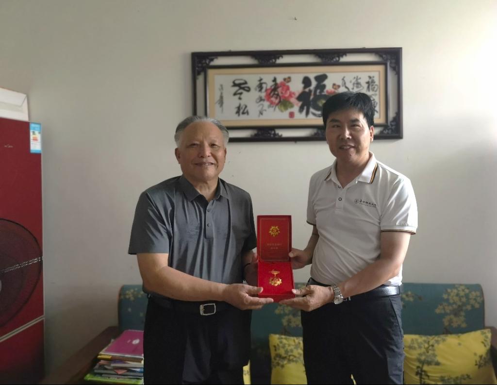 7月1日上午,物理与电子工程学院党委书记吴学军来到老党员孙绍信家中,向他颁发了“光荣在党50年”纪念章。