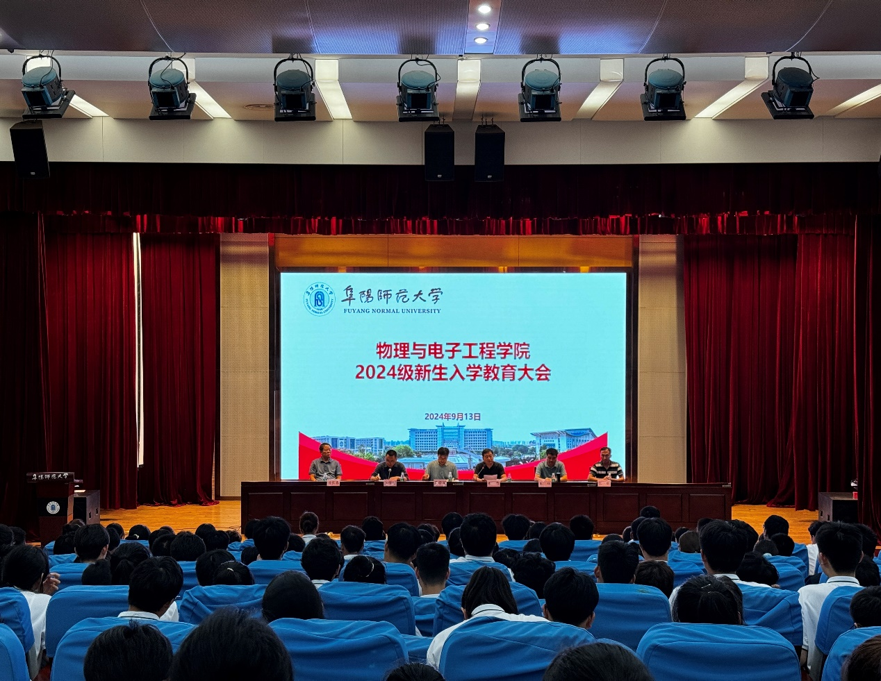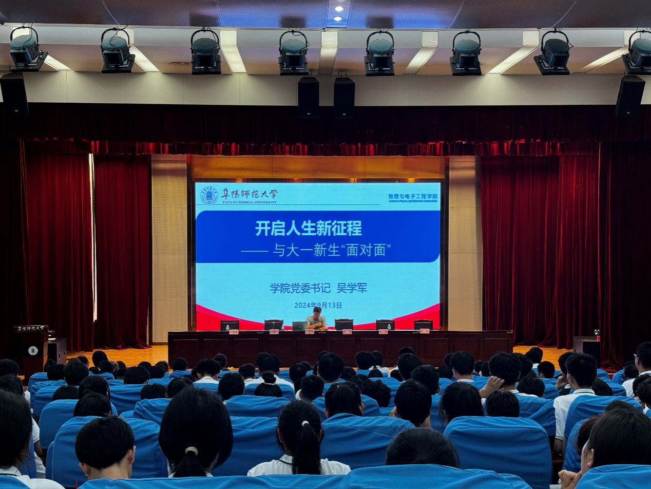 9月13日晚上,物理与电子工程学院在西湖校区正行楼二楼报告厅举行2024级新生入学教育大会。学院党委书记吴学军、院长朱勇、党委副书记张传智、各系主任、2024级新生辅导员及2024级全体新生参加会议。学院党委副书记张传智主持会议。
