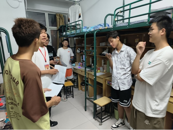 “同学们大家好,我是自动化系学生党支部的魏国全……”9月7日,新生们已经基本到达各自寝室,党员同志们积极响应支部号召,一一走进新生的宿舍,微笑着与大家打招呼,关心他们的适应情况,帮助他们解决困难问题。在走访过程中,党员同志们寝室里对同学们进行了安全教育宣讲,详细讲解了宿舍内的安全注意事项,如电器使用规范、消防安全和防盗知识帮助新生尽快适应宿舍生活。接着,党员们向同学们强调了课程学习的重要性,鼓励新生制定合理的学习计划,充分利用校园资源,并向大家分享了自己的一些学习技巧和经验,激励新生积极参与课堂讨论和课外活动,努力提升自我。
