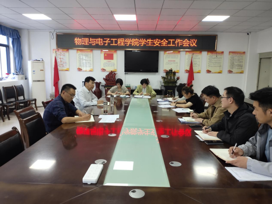 为做好学院学生安全工作,10月14日上午,物理与电子工程学院在躬行C楼306会议室召开学生安全工作会议,布置安排有关工作。学院党委副书记张传智、全体专兼职辅导员参加会议,党委书记吴学军主持会议。