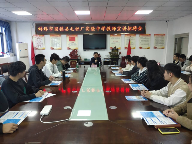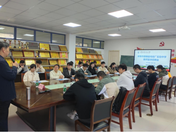 会上,固镇县毛钽厂实验中学校长张维权对学院的热情接待表示感谢,他详细介绍了学校的发展历程、办学目标、近年来教育教学取得的优异成绩、师资队伍建设、岗位福利待遇、职称晋升渠道、招聘条件要求等情况,并与学生进行了亲切的互动交流,耐心细致的解答了学生的问题、疑惑。宣讲结束后,多数同学参加了面试考核,最终有10余名同学签署了录用通知。