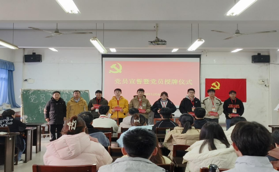 为了强化新党员的身份意识,激发党员的责任感和使命感,2024年12月6日中午,物理与电子工程学院党委于躬行C楼505教室为2024年11月份新入党的23名预备党员举行了入党宣誓暨党员授牌仪式,仪式由电子信息系学生党支部书记陶清主持。