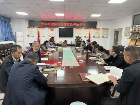 为提升物理系教师党支部的政治理论水平,全面了解习近平总书记治国理政的战略方针,2022年10月26日下午,物理系教师党支部于C306召开全体党员会议,进行政治理论学习,会议由支部书记何娟同志主持。