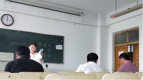 在教务处下发的有关毕业论文工作的文件指导下,论文答辩工作积极有序地展开。在答辩准备阶段,答辩组长宣读了答辩文件并告知学生答辩注意事项,随后答辩秘书安排了答辩次序。在正式答辩的过程中,一共有“陈述”和“答辩”两个环节。在听完学生们的陈述后,答辩老师就学生论文的观点、格式等问题一一提出中肯的意见,并且提出答辩问题。最后,学生们按照答辩次序依次上台回答老师提出的问题。