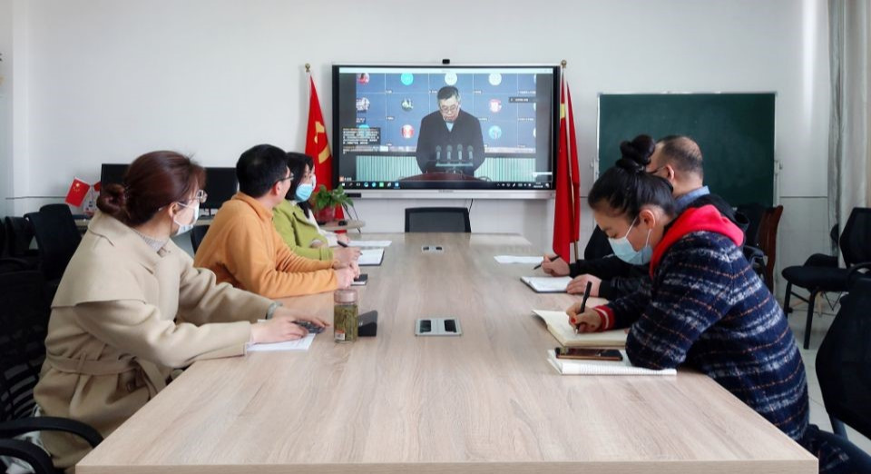 3月28日下午,“新文科教学改革研讨会——暨教育部语言学课程虚拟教研室揭牌仪式”在江苏师范大学语科院四楼报告厅召开。会议分线上、线下两种形式,文学院在景行楼826组织观看线上腾讯会议。文学院党委书记陈旭阳、院长高群、汉语言文学专业负责人张薇薇,语言学教研室主任、相关教师、教务秘书、教研秘书参加会议。