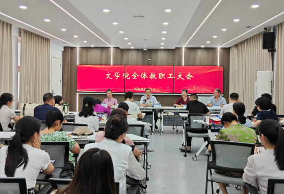 8月30日下午,文学院在三里桥校园教学B楼102室召开2024年秋季新学期全体教职工大会,深入学习贯彻党的二十届三中全会,共谋学院高质量发展。学院党政领导及全体教职工参加会议。会议由院长高群主持。