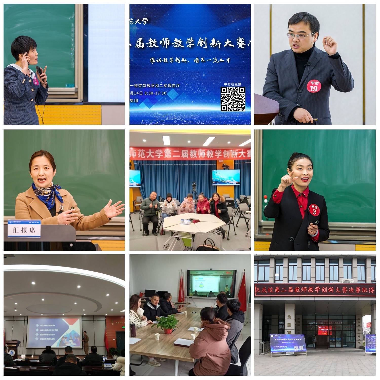 文学院正高组杜红梅,副高组张薇薇、郎瑞萍,中初组任竹良、吴丹共计5名教师进入决赛,参赛课程分别为《语文教学法》《中国汉字学》《中国文学史(二)》《中国现当代文学作品选》《广播电视概论》。