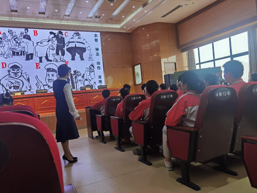 此次见习主要以听课、观摩、研讨学习为主。校内指导教师张晓东教授引用“纸上得来终觉浅,绝知此事要躬行”劝导学生们用心感受,好好体会,珍惜本次见习机会。接下来,由实验中学骨干教师蔡静主授公开课《变色龙》。蔡老师采用了漫画排序的方式来梳理文章情节,以提高学生对文章情节的理解能力,她与学生积极互动,给全体见习生带来别样的真实课堂。随后,蔡老师面向全体学生作了《以人为本,返璞归真》专题讲座,她指出,语文教学浮躁与迷失的现状,鼓励教师备课立足文本并循序渐进引导学生。