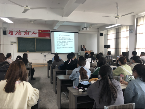 首先由陈卫老师就教师资格面试考试等方面,给同学们进行讲座交流。陈卫通过自己的实际经历,告诉同学们着装要合体正式;试讲时要注意面带微笑,声音洪亮,举止大方,与评委老师要有眼神上的交流;板书上要体现出教课大纲,应当有始有终的。陈卫着重强调了,作为老师信心和责任心是第一位的。讲课要有激情,对于语文教师的要求更高,不仅应当咬字清晰,还要做到语音悦耳,抑扬顿挫。在试讲完成以后还会有提问环节,基本上都是围绕如何安排所教的课程和教学侧重点展开。最后,陈卫老师就面试时一些常见失误点进行讲解,并给出对应的现场临时补救方法,同学们受益匪浅。
