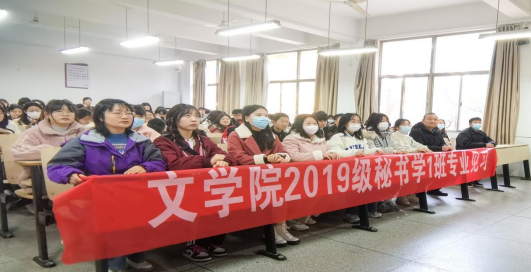 为全面贯彻党的教育方针,推进落实立德树人的根本任务,2021年11月23日,阜阳师范大学文学院2019级、2020级秘书学专业全体同学在宋贤、袁如诗、戴倩雯、刘洪宇四位老师的带领下前往景行楼103、302教室开展专业见习活动,在疫情期间本着“延期不停教、学习不停顿、质量不降低”的原则,学院邀请了阜阳师范大学优秀校友、现为颍州中学校长的赵刚老师进行了线上座谈交流。