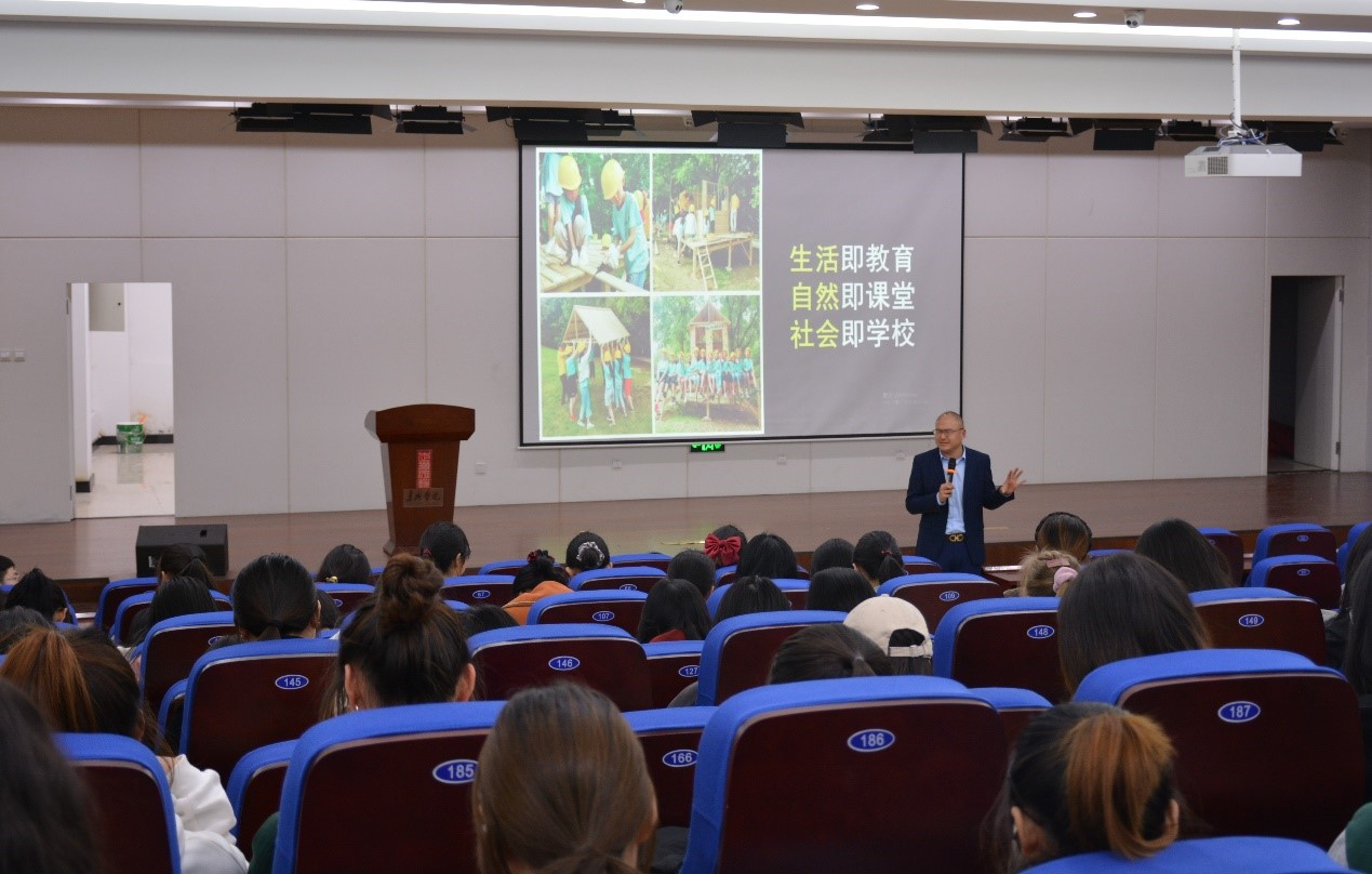 徐恩标以“一个务实的理想主义者”为主题,通过幽默风趣的语言为在场的各位同学讲述了自己在大学时的难忘事件、大学毕业后就业的经历见闻以及自己对创业之路的探寻和对国家当前教育事业的思考。徐恩标告诉大家:“成功的一半是耐心!”“幸福是当下的收获和未来的意义。”启发同学们对自己的使命和对未来教育的思考,鼓励大家为自己的未来去拼搏和奋斗。