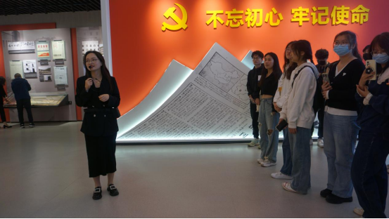 见习过程中,同学们首先来到一楼参观了安徽日报报史馆。从习近平考察安徽到70年肩负使命,砥砺前进;再到技术革新,融媒发展。一方报史馆,让同学们看到了安徽日报在讲好安徽故事,传递安徽声音70年间的坚持。