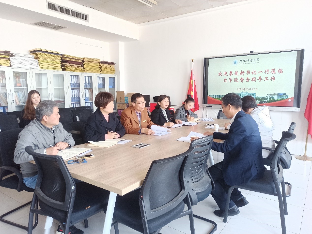 10月27日上午,校党委巡察工作领导小组副组长、党委常委、纪委书记、监察专员季爱新莅临文学院督查指导工作,深入了解文学院党政工作开展情况。