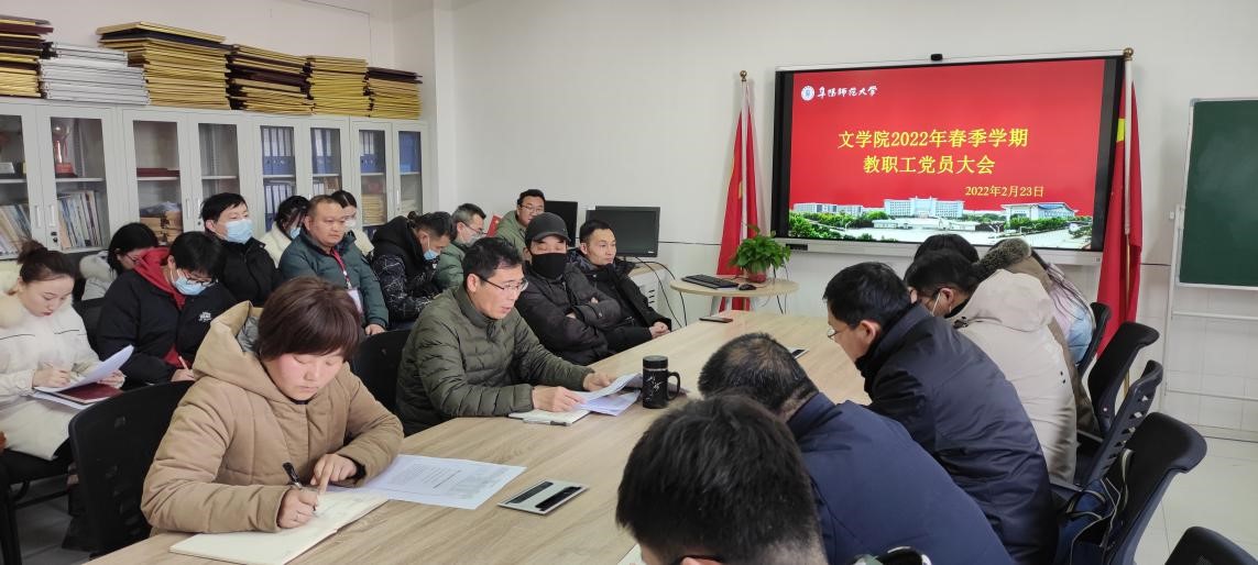 为充分发挥党员先锋模范作用,进一步提升学院党建工作水平,2月23日下午,文学院召开教职工党员大会。会议由学院党委书记陈旭阳主持。