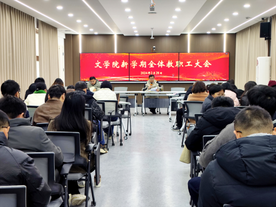 2月28日下午,文学院在西湖校区三里桥校园教学B楼召开教职工政治理论学习会,深入学习领会习近平总书记重要讲话精神。学院全体教职工参加会议,学院党委书记陈旭阳主持会议。