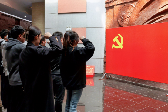 重温往昔峥嵘岁月,追寻革命记忆。上午9时,陈旭阳带领大家整齐列队,迈着庄严的步伐走向了“英雄颂”纪念雕像前,为革命烈士们敬献花篮,鞠躬致敬。党旗前,全体党员凝视党旗,庄严地举起右拳,重温入党誓词。铮铮誓词,久久回荡,党员们铿锵有力、掷地有声的誓言传递了为党的事业奋斗终身的决心和坚定信念。