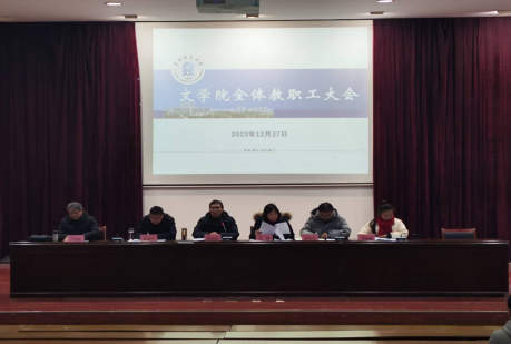 根据《中国工会章程》《学校教职工代表大会规定》和《阜阳师范大学二级单位教代会工作实施办法》(校党[2020]59号)等文件精神,文学院于12月27日下午在西湖校区D楼报告厅召开2023年度全体教职工大会,审议学院工作报告、工会工作报告、学院财务工作报告,研究通过了《文学院绩效考核分配方案》。大会由学院党委书记陈旭阳主持,学院全体教职工参加大会。