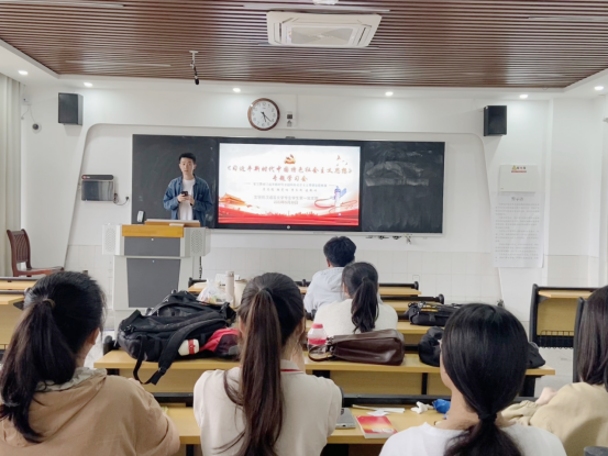 为扎实开展学习贯彻习近平新时代中国特色社会主义思想主题教育,全面学习领会习近平新时代中国特色社会主义思想,5月30日下午,文学院汉语言文学专业学生第一党支部在景行楼202教室召开学习贯彻习近平新时代中国特色社会主义思想主题教育专题学习会,专题学习习近平新时代中国特色社会主义思想,开展主题教育交流研讨。会议由支部书记王洋主持。