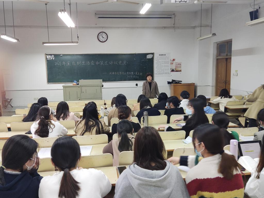 3月30日,文学院汉语言文学专业学生第一党支部在景行楼105室召开2021年度组织生活会和民主评议党员活动,文学院党委副书记徐春婷出席会议,会议由支部书记戴倩雯主持,支部全体党员参加。