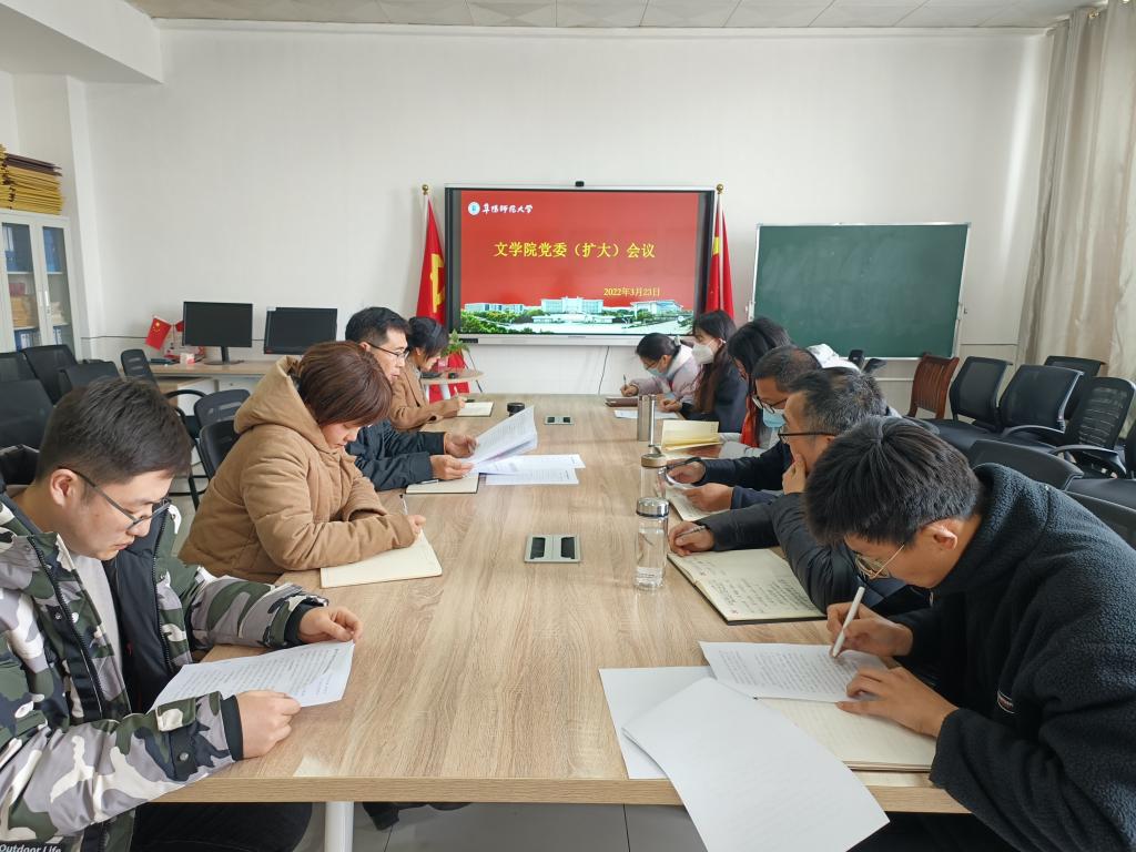 3月23日,文学院于景行楼826召开党委(扩大)会议,对文学院各党支部书记进行述职评议,并进行党支部综合考核评价工作。会议由党委书记陈旭阳主持,党委委员和支部书记参加会议。