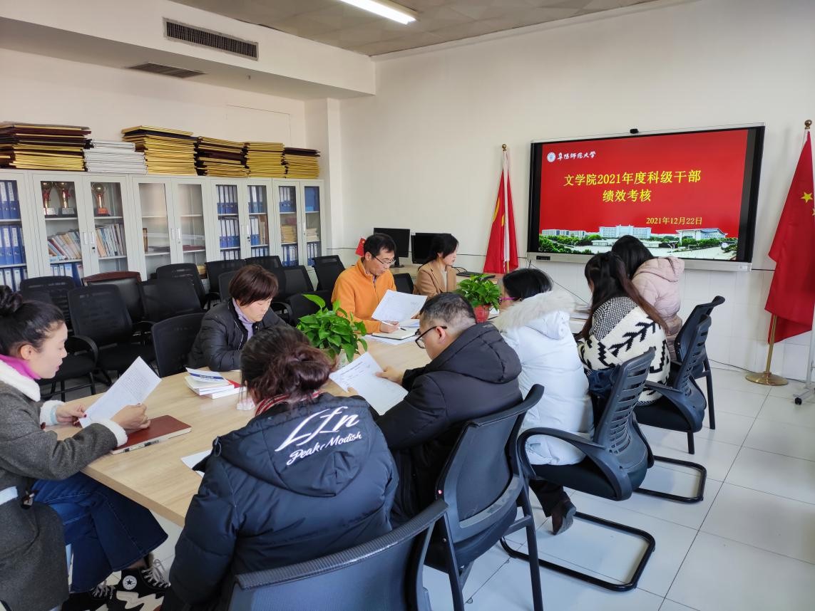 2021年12月22日下午,文学院在景行楼826开展科级干部绩效考核。该会议由党委书记陈旭阳主持,学院党委成员、科级干部及学生代表参加会议。