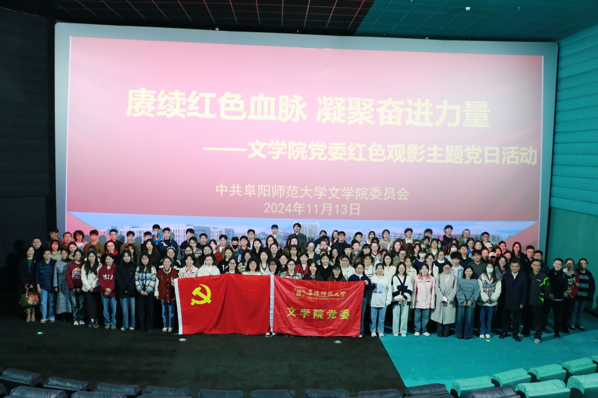 今年是新中国成立75周年,是中国人民志愿军抗美援朝出国作战74周年。为传承红色基因,赓续红色血脉,加强爱国主义教育,用心用情推动党史学习教育常态化长效化,11月13日下午,文学院党委副书记、纪委书记任竹良带领全院师生党员、发展对象、入党积极分子前往影院开展以“赓续红色血脉,凝聚奋进力量”为主题的红色观影主题党日活动。