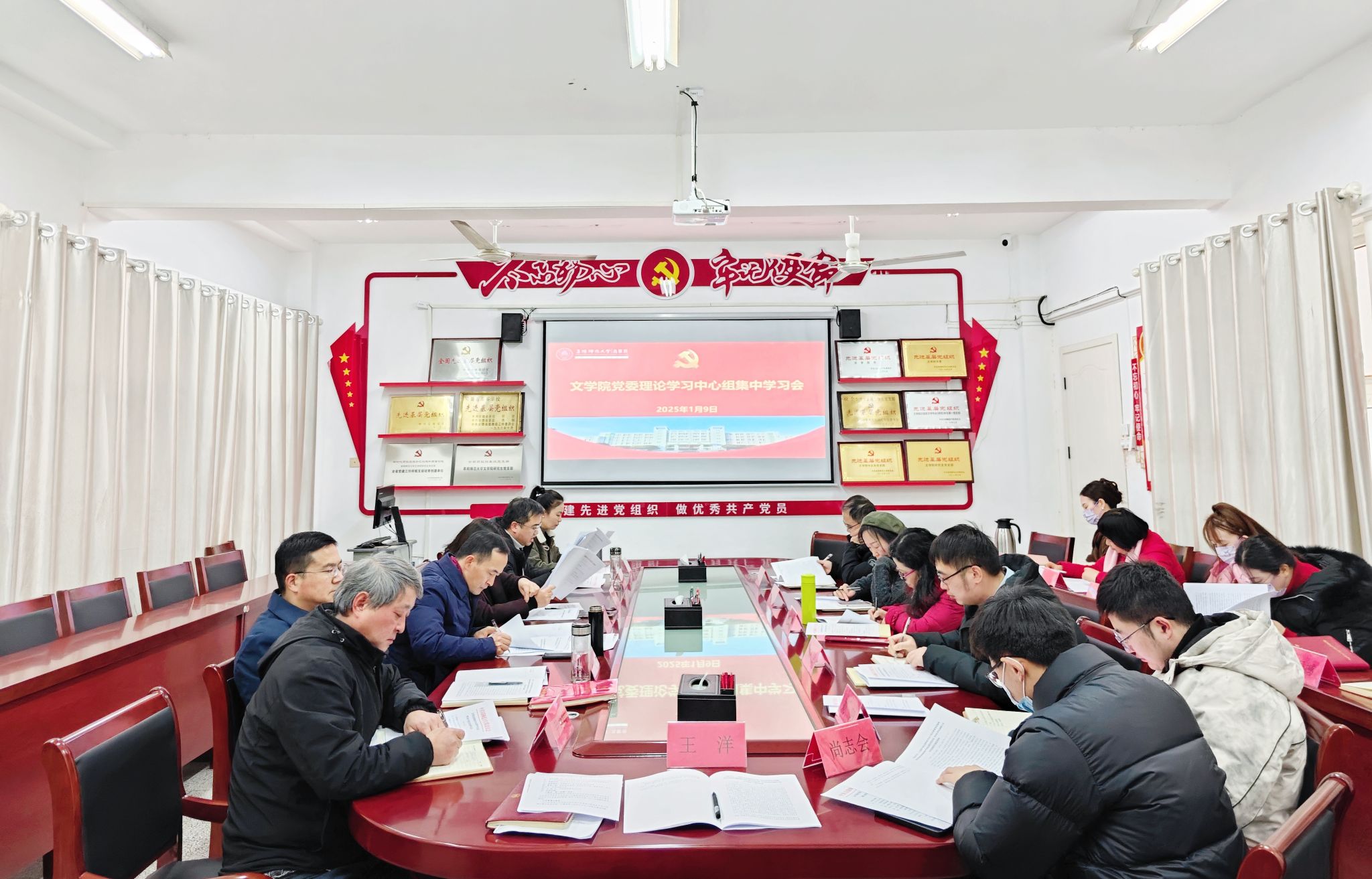 1月9日下午,文学院在西湖校区三区文学院105会议室召开党委理论学习中心组2025年第1次集中学习会暨2024年度民主生活会会前学习会,深入学习贯彻习近平新时代中国特色社会主义思想,认真贯彻落实习近平总书记关于全面从严治党的重要论述。文学院党政领导、处级党员干部、党委委员、党支部书记、科级党员干部参加学习会。文学院党委书记王清主持学习会。