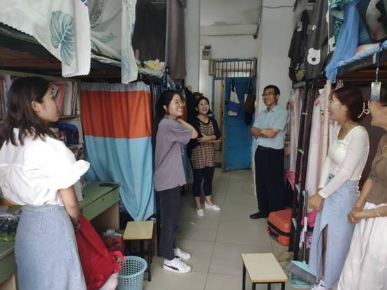 新学期伊始,为深入了解学生返校情况,9月5日下午,文学院党委书记陈旭阳、院长高群、党委副书记徐春婷带领专职辅导员刘阳、尚志会等人了走访学生宿舍。