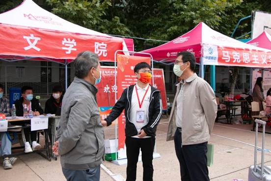 文学院高度重视迎新工作,严格落实学校关于开学期间疫情防控的有关要求,结合学院的实际情况,详细制定了迎新工作方案。新生在报道专用通道处完成入校两码检测、行李消杀、体温测量、信息核对等一系列流程后进入学校,并在迎新志愿者的帮助下前往学院迎新工作点,完成后续入学工作。迎新现场各项工作安全顺利、平稳有序进行。