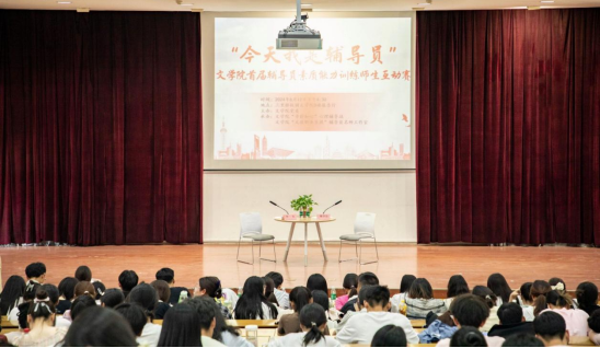 为进一步加强辅导员队伍专业化、职业化建设,进一步提升辅导员的业务能力,推进师生融合,深化三全育人,6月12日,文学院于三里桥校区D楼报告厅举办首届辅导员素质能力训练师生互动赛。比赛由文学院党委主办,文学院“寻影知心”心理辅导站和“文道职业生涯”辅导员名师工作室承办,文学院全体辅导员和18名学生参加比赛,校党委宣传部副部长王峰、计算机与信息工程学院党委副书记刘杰、体育学院党委副书记徐春婷、法学院党委副书记李阳、文学院副院长张薇薇应邀担任大赛评委。校学生工作处处长黄正杰全程观看比赛并做点评,文学院党委书记王清、党委副书记任竹良和文学院各班级学生到场观摩。