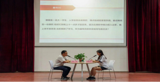 本次比赛文学院辅导员和学生通过抽签随机匹配,以情景再现的方式就大学生心理健康教育、防范电信诈骗、学业学习规划、学生干部培养等主题展开谈心谈话。一方面参赛辅导员们巧妙运用各种沟通技巧,耐心倾听学生的问题和困惑,并给予恰当的建议与指导,帮助学生解决问题,走出困惑,充分展示了文学院辅导员的风采;另一方面实行角色互换,学生立于辅导员角色,耐心倾听学生困惑,快速抓紧问题关键点,帮助学生走出“心理卡点”;辅导员从学生角度寻求帮助,以心换心,以便更好地理解学生的心理状况,创新工作方式方法,达到以赛促学的效果。
