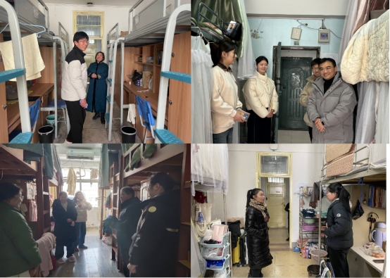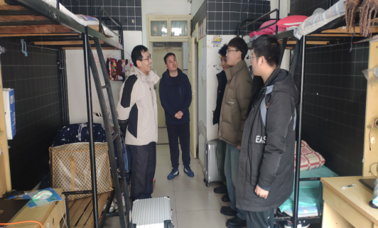 走访过程中,老师们亲切地与学生交流,了解学生寒假学习、生活情况和新学期规划,叮嘱学生提高校园安全意识,在宿舍注意用电安全,不要使用违规电器;目前阜阳冰雪尚在融化,提醒学生出行安全;尤其在财产安全上,提醒学生注意保管好个人财物,谨防电信诈骗,提高反诈意识;要求学生尽快调整状态,做好学业规划,以饱满的精神状态投入到新学期的生活。在毕业生宿舍,党委书记陈旭阳重点关注毕业班学生的考研、实习、就业等情况,询问学生就业需求和就业规划,帮毕业生排忧解难,进一步推进学院就业工作走深走实。