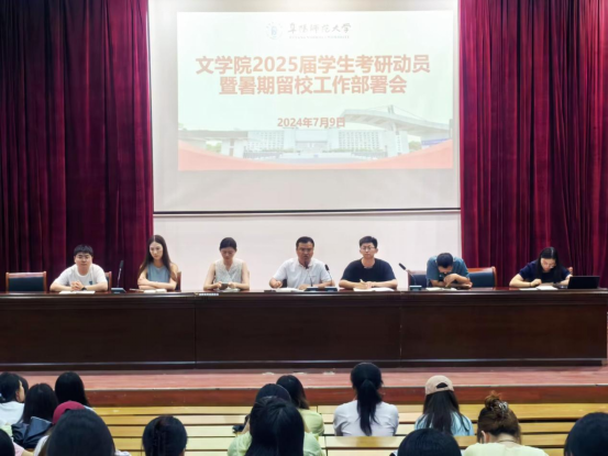 7月9日下午,文学院于三里桥校园D楼学术报告厅召开了2025届学生考研动员会暨暑期留校工作部署会。文学院党委副书记任竹良、学院全体辅导员及暑期留校学生参加会议。