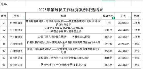 文学院在2025年度辅导员工作优秀案例评选中喜获佳绩