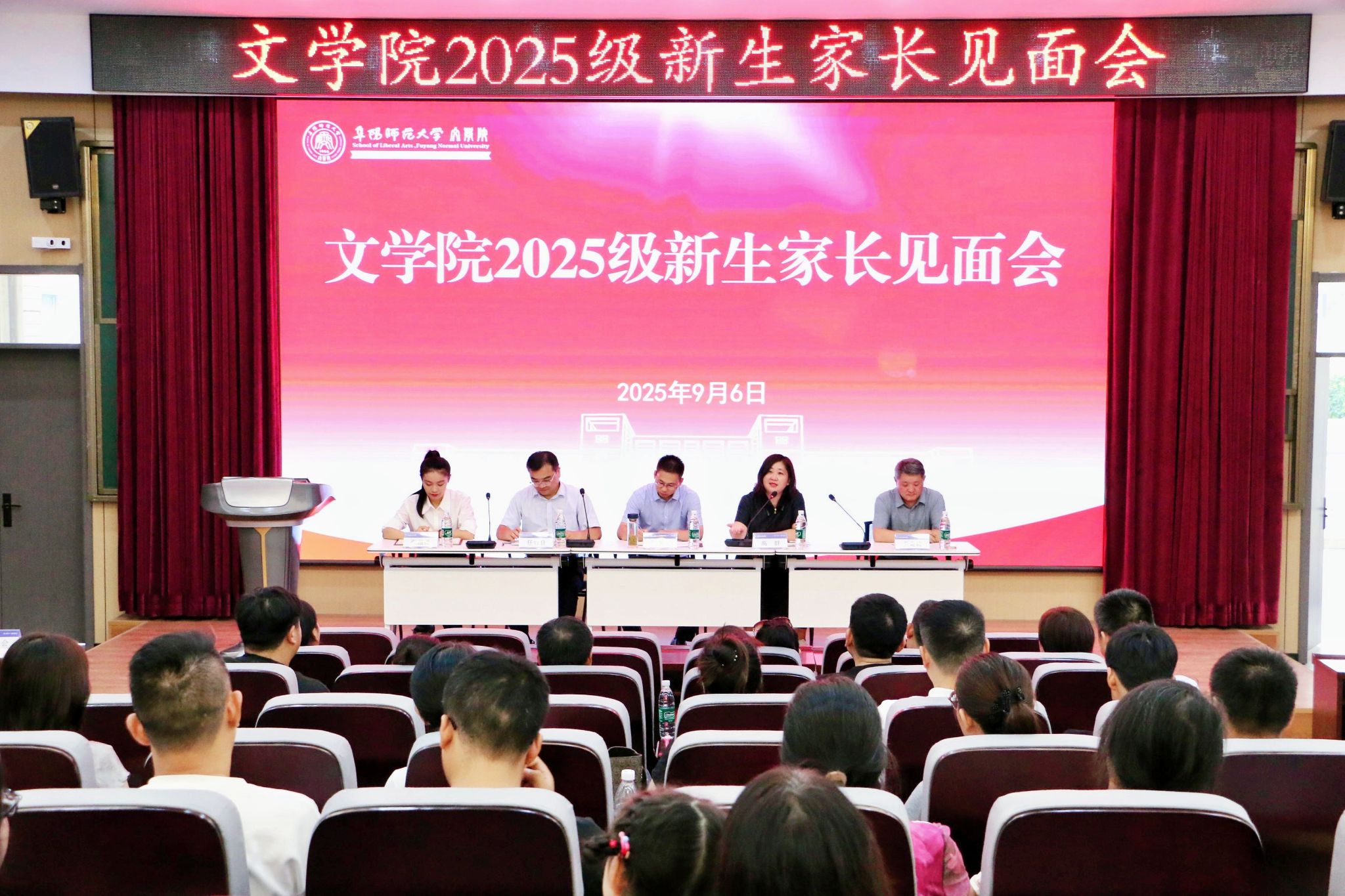 为凝聚育人共识,助力新生成长,9月6日下午,文学院在西湖校区三区C楼报告厅召开2025级新生家长见面会。文学院党委书记刘张飞、院长高群、副院长尹奇岭、张薇薇,新生辅导员、团委负责人及新生家长参加。会议由学院党委副书记任竹良主持。
