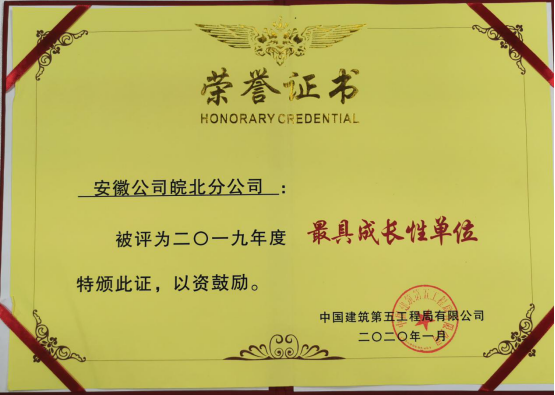 皖北分公司评为“最具成长性单位”
