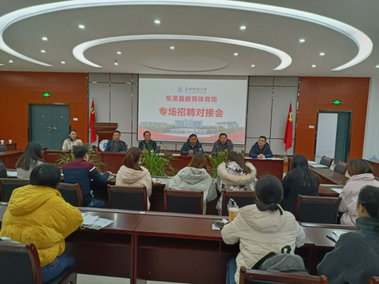 3月10日上午,由阜阳师范大学携手东至县教育体育局共同主办的“东至县省级示范高中学校新任教师专场招聘对接会”在西湖校区理科楼二楼报告厅举行。