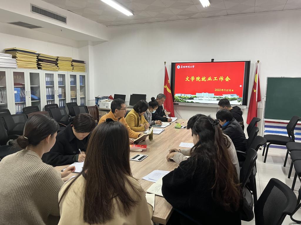 11月16日下午,文学院学习贯彻2023届全国和安徽省普通高校毕业生就业创业工作网络视频会议精神,文学院党委书记陈旭阳、院长高群,全体辅导员参加会议。