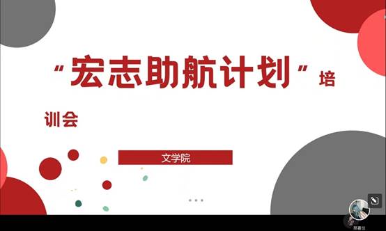 为提升我校大学生就业意识、转变就业态度、提升就业能力,文学院于11月26日下午开展“宏志助航计划”就业能力提升培训活动。此次活动主要面向2019、2020级学生,采取线上专题培训的方式进行,由文学院2019级优秀学生高鹏、陈曦、武立担任主讲人。