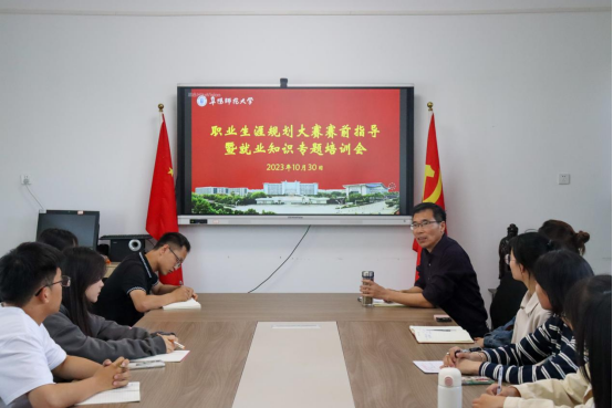 为帮助学生明确未来职业方向,提升学院就业指导能力,文学院于10月30日下午在西湖校区三区B楼202教室召开职业生涯规划大赛赛前指导暨就业知识培训会。文学院党委书记陈旭阳作培训讲座,学院辅导员、参赛选手、毕业班学生参加培训会。