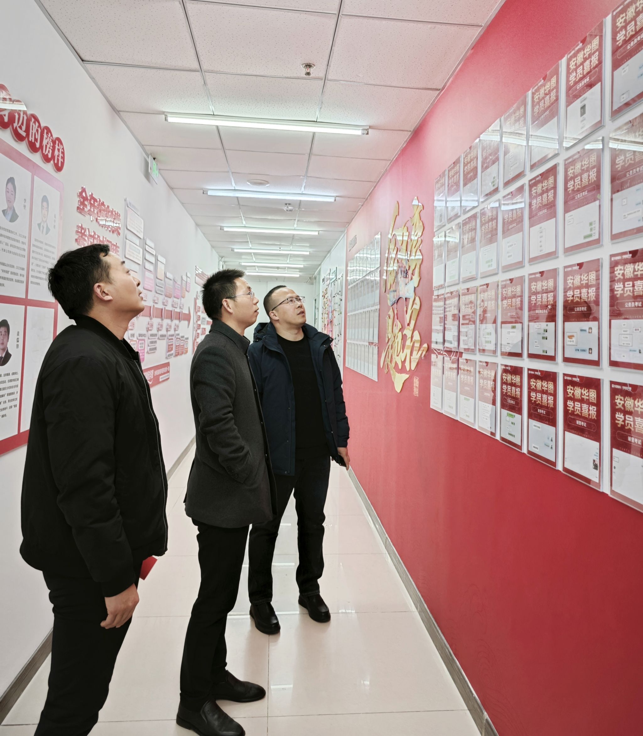 洽谈结束后,在王运龙的陪同下,刘张飞一行实地参观了安徽华图校区环境、教学设施及党建文化建设成果。