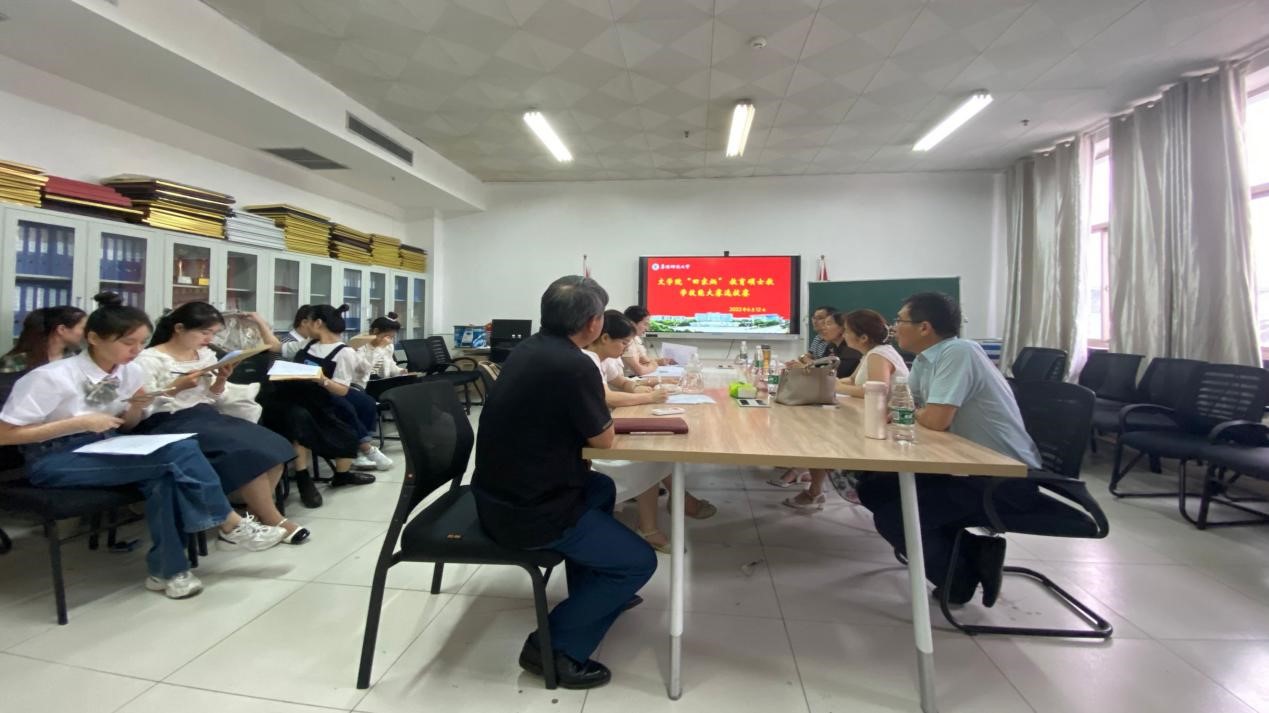 6月12日,2022年“田家炳杯”全日制教育硕士专业学位研究生教学技能大赛选拔赛在文学院成功举行。阜阳师范大学附属中学高家芳老师、阜阳三中郑伟老师和我院杜红梅老师受邀担任评委。赛前,陈旭阳书记代表文学院致辞欢迎评委老师,尹奇岭副院长鼓励参赛选手放松心态,展现最好的状态。